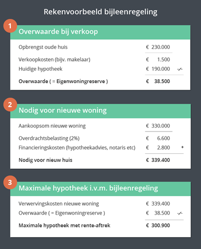 Laat je niet afschrikken door de vele rekenvoorbeelden in dit verhaal. De bijleenregeling is niet ingewikkeld en eenvoudig zelf uit te rekenen. Onze rekenvoorbeelden geven je de handvatten. Om goed uit te leggen hoe het zit met overwaarde en hypotheekrenteaftrek, leggen we de regels uit aan de hand van een voorbeeldsituatie.