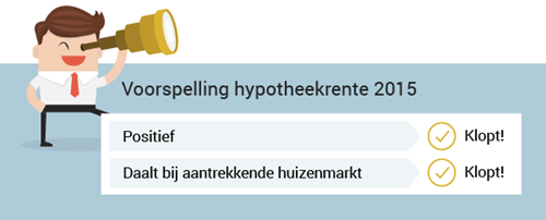 2015 was een mooi jaar voor mensen met een eigen huis. Stijgende huizenprijzen en een laagste hypotheekrente die steeds verder daalde. De verwachting voor 2016 is nóg iets positiever. Blikken we terug op 2015 dan zien we dat onze voorspellingen grotendeels netjes uitkwamen. Eén voorspelling, die van de huizenprijs, bleek in werkelijkheid nog iets mooier dan de voorspelling.