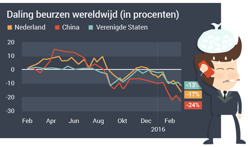 Voor het vierde kwartaal op rij groeide de Nederlandse economie, zo meldde het CPB recent. Ook voor  de rest van het jaar zijn de vooruitzichten rooskleurig. Op de aandelenbeurs is niks van dit positivisme te merken. Voor beleggers in Nederlandse aandelen verloopt 2016 vooralsnog dramatisch. Waar komt die beursonrust vandaan en valt verbetering te verwachten?