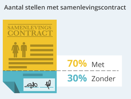 Samenwonen kan een goed moment zijn om je relatie officieel vast te leggen. Dit is verstandig, want hierna wordt je door de officiële instanties ook als een stel gezien. Samenwonen zorgt er namelijk nog niet voor dat jullie relatie ook wettelijk wordt 'erkend'. Je kunt een samenlevingscontract laten op stellen bij een notaris. Wat er precies in komt te staan, bepalen jullie  zelf. De notaris kan jullie hierbij helpen.