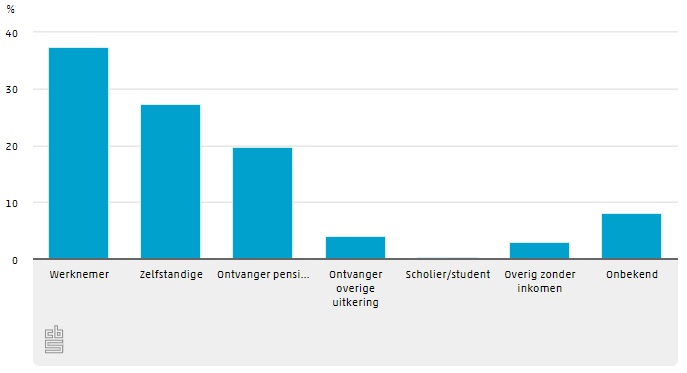 Particuliere verhuurders zijn vooral actief als werknemer (37 procent) of zelfstandige (27 procent). Waar verreweg de meeste verhuurders één woning verhuren, geldt dit niet voor zelfstandigen. Deze groep heeft vaker twee of meer panden in bezit. Ook ligt de leeftijd hoger. Drie kwart van de zelfstandigen 45 jaar of ouder is, onder werknemers is dat iets meer dan de helft.