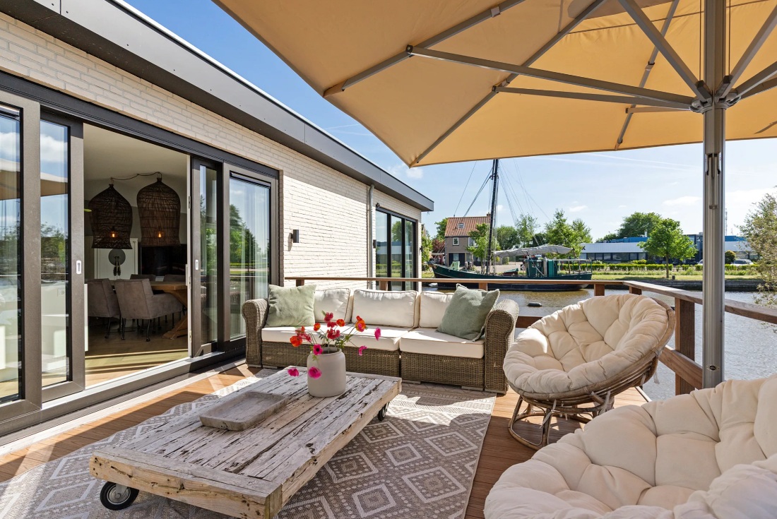 Vanuit deze watervilla uitzicht op Franekertrekvaart